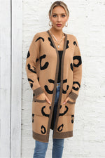 Pattern type: Leopard Style: Classy Features: Thermal, Pocketed Neckline: Open front Length: Long Sleeve length: Long sleeves Sleeve type: Regular sleeves Material composition: 85% acrylic, 15% polyester Stretch: Highly stretchy Care instructions: Machine wash cold....