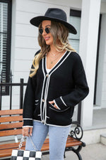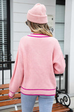 Pattern type: Color block Style: Casual Features: Ribbed Neckline: V-neck Length: Regular Sleeve length: Long sleeves Sleeve type: Dropped shoulders Material composition: 100% acrylic Stretch: Moderate stretch Care instructions: Hand wash cold. Do not tumble...