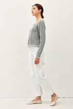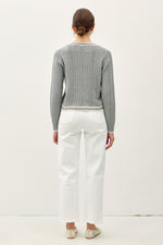 This chunky cable knit cardigan is a cozy and stylish choice for fall and winter layering. It features a classic button-down style with tortoise buttons and a round neck. The long sleeves add warmth, while the chunky cable knit design provides texture and visual interest. The accent color around the edges adds a pop of color for a playful touch. Overall, this cardigan exudes a preppy, elegant, and cute aesthetic, making it easy to wear for everyday outfits.