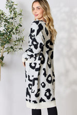 This cardigan boasts a striking leopard print design that adds a touch of wild elegance to any outfit. The open front style makes it effortlessly versatile, ideal for layering over a basic tee or dressing up with a sleek top for a night out.