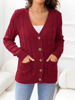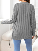 Pattern type: Solid Style: Casual Features: Pocketed Neckline: V-neck Length: Long Sleeve length: Long sleeves Sleeve type: Regular sleeves Material composition: 100% acrylic Stretch: Highly stretchy Care instructions: Machine wash cold. Tumble dry low. Imported...