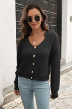 Pattern type: Solid Style: Casual Features: Ribbed Neckline: V-neck Length: Regular Sleeve length: Long sleeves Sleeve type: Regular sleeves Material composition: 100% acrylic Stretch: Moderate stretch Care instructions: Hand wash cold. Do not tumble dry....