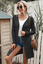 Pattern type: Solid Style: Casual Features: Buttoned Neckline: Open front Length: Long Sleeve length: Long sleeves Sleeve type: Regular sleeves Sheer: No Material composition: 95% polyester, 5% spandex Stretch: Slightly stretchy Care instructions: Machine wash...