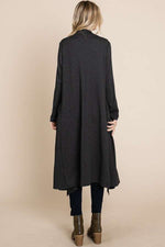 The Open Front Longline Cover Up with Pockets is a versatile and stylish outerwear option for any occasion. With its open front design, this cover-up can be effortlessly layered over any outfit, adding a touch of sophistication and fashion-forwardness. The longline length provides an elegant and flattering silhouette, while the inclusion of pockets adds functionality and convenience for carrying your essentials. Made from lightweight and breathable fabric, it is suitable for various settings, whether it's a casual brunch or a night out with friends. Pair it with jeans, a dress, or even leggings for a chic and comfortable look. The Open Front Longline Cover Up with Pockets is an essential piece in your wardrobe, offering both style and practicality.