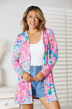 Wrap yourself in feminine charm with this Floral Open Front Long Sleeve Cardigan. The delicate floral print and flowing silhouette create a romantic and elegant look, perfect for layering over any outfit to add a touch of sophistication and style.