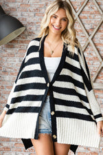 The Textured Striped Button Down Cardigan is a versatile and stylish piece to add to your wardrobe. The textured stripes give a unique and modern touch to the classic cardigan design. Featuring a button-down front, this cardigan can be worn open or closed for different looks. The lightweight fabric makes it perfect for layering during transitional seasons. Pair it with jeans and a basic top for a casual vibe, or layer it over a dress for a more polished look. Stay chic and cozy with this chic textured striped button-down cardigan!