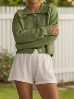 Features: Buttoned, Frill Stretch: Moderate stretch Material composition: 65% polyester, 35% cotton Care instructions: Machine wash cold. Tumble dry low. Imported Product Measurements (Measurements by inches) & Size Conversion Size US Top Length Bust Sleeve...