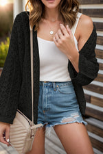Features: Openwork Stretch: No stretch Material composition: 55% acrylic, 45% cotton Care instructions: Machine wash cold. Tumble dry low. Imported Product Measurements (Measurements by inches) & Size Conversion Size US Bust Shoulder Sleeve Length Top...