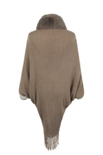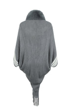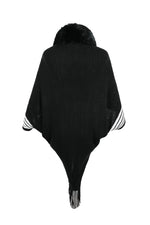 Pattern type: Solid Style: Classy, Casual Features: Faux fur trim, Fringe Neckline: Open front Length: Long Sleeve length: Long sleeves Sleeve type: Cloak sleeves Material composition: 100% polyester Stretch: Moderate stretch Care instructions: Machine wash...