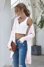 Sizing category: Regular Pattern type: Tie-dye Style: Casual Features: High-low Neckline: Open front Length: Long Sleeve length: Long sleeves Sleeve type:Normal shoulder Material: 95% polyester, 5% spandex Stretch: Moderate stretch Sheer: No Body: Not lined...