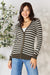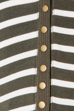 This cardigan features a timeless striped pattern that adds a touch of sophistication to any outfit. The snap button closure not only adds a modern twist to the classic cardigan but also makes it easy to put on or take off.