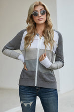 Sizing category: Regular Pattern type: Solid, color block Style: Casual Features: Drawstring Neckline: Hooded Length: Long Sleeve length: Long sleeves Sleeve type: Raglan sleeves Material: 100% acrylic Stretch: Highly stretchy Sheer: No Body: Not lined...