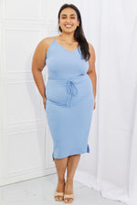 This stunning dress is made from a soft and lightweight high stretch rib knit fabric, ensuring ultimate comfort and breathability on even the hottest days. The midi length of the dress hits just below the knee, making it a versatile option for both casual and dressy occasions. The sleeveless design is perfect for showing off your summer tan, while the tie front detail adds a touch of sophistication and style. This dress boasts a flattering silhouette that hugs your curves in all the right places. The high stretch rib knit fabric provides a figure-hugging fit that accentuates your best features while remaining comfortable and easy to move in.