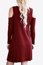 Type: Casual dresses Sizing category: Regular Pattern type: Solid Style: Casual Features: Basic style Neckline: Round neck Length: Mini Sleeve length: Long sleeves Sleeve type: Cold-shoulder Material: 95% rayon, 5% spandex Stretch: Moderate stretch Sheer:...