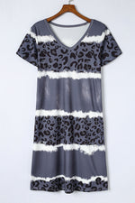 Pattern type: Leopard Style: Chic Features: Basic style Neckline: V-neck Length: Mini Sleeve length: Short sleeves Sleeve type: Regular sleeves Hem shaped: Straight Sheer: No Body: Not lined Material composition: 95% polyester, 5% spandex Stretch:...