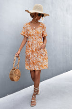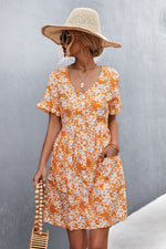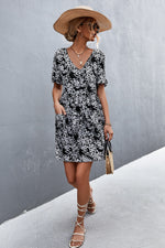 Type: Casual dresses Sizing category: Regular Pattern type: Printed Style: Chic, classy Features: Buttoned Neckline: V-neck Length: Mini Sleeve length: Short sleeves Sleeve type: Puff sleeves Material: 95% polyester, 5% spandex Stretch: No stretch Sheer:...
