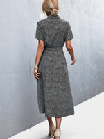 Type: Casual dresses Sizing category: Regular Pattern type: Printed Style: Casual Features: Buttoned, tie Neckline: Collared neck Length: Midi Sleeve length: Short sleeves Sleeve type: Regular sleeves Material: 95% polyester, 5% spandex Stretch: No stretch...