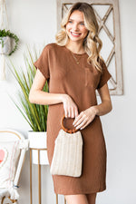 Pattern type: Solid Style: Casual Features: Pockets Neckline: Round neck Length: Mini Sleeve length: Short sleeves Sleeve type: Regular sleeves Hem shaped: Straight Sheer: No Body: Not lined Material composition: 70% polyester, 27% viscose, 3%...