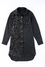 Type: Shirt dress, casual dresses Sizing category: Regular Pattern type: Contrast Style: Casual Features: Buttoned, contrast sequin Neckline: Collared neck Length: Mini Sleeve length: Long sleeves Sleeve type: Regular sleeves Material: 90% polyester, 10% spandex...