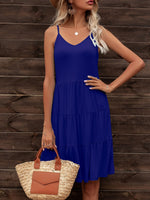 Pattern type: Solid Style: Chic Features: Basic style Neckline: V-neck Length: Knee length Sleeve length: Sleeveless Sleeve type: Spaghetti straps Hem shaped: A-line Sheer: No Body: Not lined Material composition: 95% viscose, 5% elastane Stretch:...