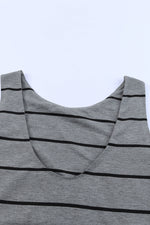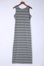 Pattern type: Striped Style: Casual Features: Slit Neckline: Round neck Length: Maxi Sleeve length: Sleeveless Sleeve type: Sleeveless Hem shaped: Slit Sheer: No Body: Not lined Material composition: 95% polyester, 5% spandex Stretch: Slightly stretchy...