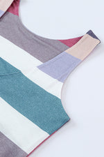 Pattern type: Striped Style: Casual Features: Slit Neckline: Round neck Length: Maxi Sleeve length: Sleeveless Sleeve type: Sleeveless Hem shaped: Straight Sheer: No Body: Not lined Material composition: 95% polyester, 5% spandex Stretch: Slightly stretchy...