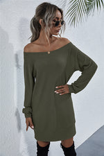 Type: Casual dresses Sizing category: Regular Picture style: Studio Pattern type: Solid Style: Casual Features: Waffle-knit Neckline: Boat neck Length: Mini Sleeve length: Long sleeves Sleeve type: Regular sleeves Material: 95% polyester, 5% spandex Stretch:...