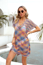 Angel Wings Openwork Contrast Short Sleeve Cover-Up