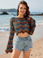 Features: Openwork Sheer: Semi-sheer Stretch: Slightly stretchy Material composition: 100% acrylic Care instructions: Machine wash cold. Tumble dry low. Imported Product Measurements (Measurements by inches) & Size Conversion Size US Top Length Bust Sleeve Length...