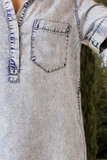 Pocketed Collared Neck Short Sleeve Denim Dress