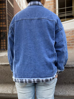 Plus Size Plaid Collared Neck Raw Hem Denim Jacket