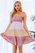 Type: Casual dresses Sizing category: Regular Pattern type: Color block Style: Chic, classy Features: Ruffle, smocked Neckline: Straight Length: Mini Sleeve length: Sleeveless Sleeve type: Spaghetti straps Material: 70% viscose, 30% tencel Stretch: No stretch...