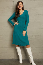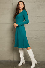 This stunning dress effortlessly combines comfort and sophistication. Its unique chevron pattern on the upper body adds a touch of modern flair, while the V-neck and long sleeves provide a timeless elegance. Crafted from a blend of high-quality materials including cotton, rayon, and spandex, this midi dress offers a relaxed fit that flatters every body type. Whether you're headed to a casual brunch or a night out, the rib fabric and solid design ensure you'll look effortlessly chic and feel comfortable all day long.