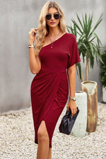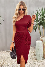 Features: Ruched Sheer: Opaque Stretch: Slightly stretchy Body: Not lined Material composition: 64% viscose, 31% polyester, 5% elastane Care instructions: Machine wash cold. Tumble dry low. Imported Product measurements: S: length 45 in, bust 34...