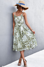 Type: Casual dresses Sizing category: Regular Pattern type: Floral Style: Casual, chic Features: Smocked, frill, belted Neckline: Scoop neck Length: Midi Sleeve length: Sleeveless Sleeve type: Sleeveless Material: 95% polyester, 5% spandex Stretch: No stretch...