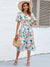 Pattern type: Multicolored Style: Chic Features: Tie Neckline: V-neck Length: Midi Sleeve length: Short sleeves Sleeve type: Regular sleeves Hem shaped: A-line Sheer: No Body: Not lined Material composition: 100% polyester Stretch: No stretch Care...