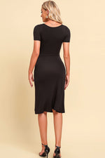 Type: Casual dresses Sizing category: Regular Pattern type: Solid Style: Classy Features: Slit Neckline: Sweetheart neck Length: Midi Sleeve length: Short sleeves Sleeve type: Regular sleeves Material: 95% polyester, 5% spandex Stretch: Slightly stretchy Sheer:...