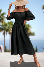 Pattern type: Solid Style: Classy Features: Basic style Neckline: Square neck Length: Midi Sleeve length: Short sleeves Sleeve type: Puff sleeves Hem shaped: A-line Sheer: Opaque Body: Not lined Material composition: 95% polyester, 5% elastane...