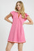This fashion pink mini dress features a sporty hooded design with eye-catching contrast red and white trim details. Made from comfortable cotton blend fabric, it offers a relaxed fit perfect for casual occasions. The short sleeves and mini length create a youthful, athletic-inspired silhouette. Ideal for active lifestyle enthusiasts who want to combine comfort with contemporary style.