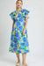 This stunning Blue Floral Ruffle Sleeve Midi Dress features a vibrant botanical print in shades of blue, green, and yellow. Crafted from lightweight, flowing fabric that drapes beautifully, this dress showcases romantic ruffle sleeves and a flattering V-neckline. The midi length and A-line silhouette create an elegant and feminine look perfect for various occasions. The eye-catching floral pattern adds a fresh, garden-inspired charm while the comfortable fit ensures all-day wearability. Ideal for spring and summer styling, this dress combines contemporary design with timeless floral appeal.