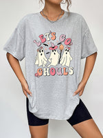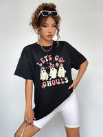 Round Neck Short Sleeve LET'S GO GHOULS Graphic T-Shirt