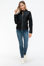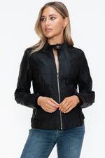 A PU leather biker jacket with side zip pockets is a stylish and edgy piece that combines classic biker aesthetics with modern design elements. This jacket is typically made from faux leather, featuring a front zipper closure, shoulder epaulettes, and convenient side zip pockets for added style and functionality. Perfect for adding a touch of rebellion to your outfit, this versatile jacket is a fashion staple that exudes attitude and sophistication.