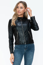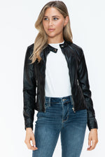 A PU leather zip-up jacket with pockets is a stylish and practical piece made from faux leather material. This type of jacket typically features a front zipper closure for easy wear, as well as functional...