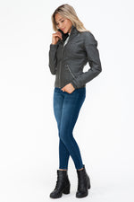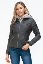 YMI Faux Layered Double-Zipper Jacket with Fuzzy Hood
