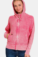 This washed zip-up hooded jacket is a stylish and versatile addition to your outerwear collection. The washed finish gives it a trendy and lived-in look that can easily be dressed up or down. With a zip-up front and a hood for added functionality, this jacket is practical for various weather conditions. The relaxed fit provides a comfortable and laid-back vibe, perfect for everyday wear. Whether you're running errands or heading out for a casual outing, this jacket offers both style and functionality. Stay cozy and fashionable with this washed zip-up hooded jacket that effortlessly combines comfort and style.