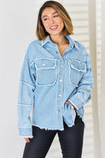 Features: Raw hem, Washed, Pocketed Stretch: No stretch Material composition: 90% cotton 10% polyester Care instructions: Machine wash cold. Tumble dry low. Imported Product measurements:S:Top Length 29.13 in, Sleeve Length 20.47 in, Bust 45.67 inM:Top...