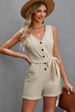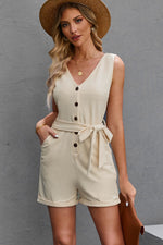 Pattern type: Solid Style: Casual Features: Buttoned, Pockets, Tie Neckline: V-neck Length: Short Sleeve length: Sleeveless Sleeve type: Sleeveless Material composition: 85% polyester, 10% cotton, 5% spandex Stretch: Slightly stretchy Care instructions: Machine wash cold....
