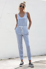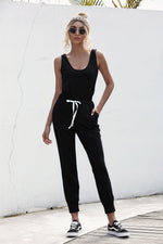 Sizing: Relaxed fit Pattern: Solid Features: Sleeveless, drawstring, ribbed cuff, ankle length Neckline: Scoop neck Sheer: No Stretch: Slightly stretchy Product measurements: S: length 55 in, bust 37 in, waist 39 in, sleeve length 39...