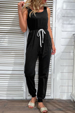 Pattern: Two-tone Features: Drawstring waist, sleeveless, pockets Neckline: Scoop neck Stretch: Slightly stretchy Product measurements: S: bust 35 in, length 54 in, waist 25-39 in, hip 40 inM: bust 37 in, length 55 in, waist...