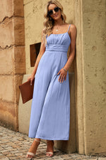 Pattern type: Solid Style: Casual Features: Tie Neckline: Square neck Length: Long Sleeve length: Sleeveless Sleeve type: Spaghetti straps Material composition: 100% polyester Stretch: No stretch Care instructions: Machine wash cold. Tumble dry low. Imported...
